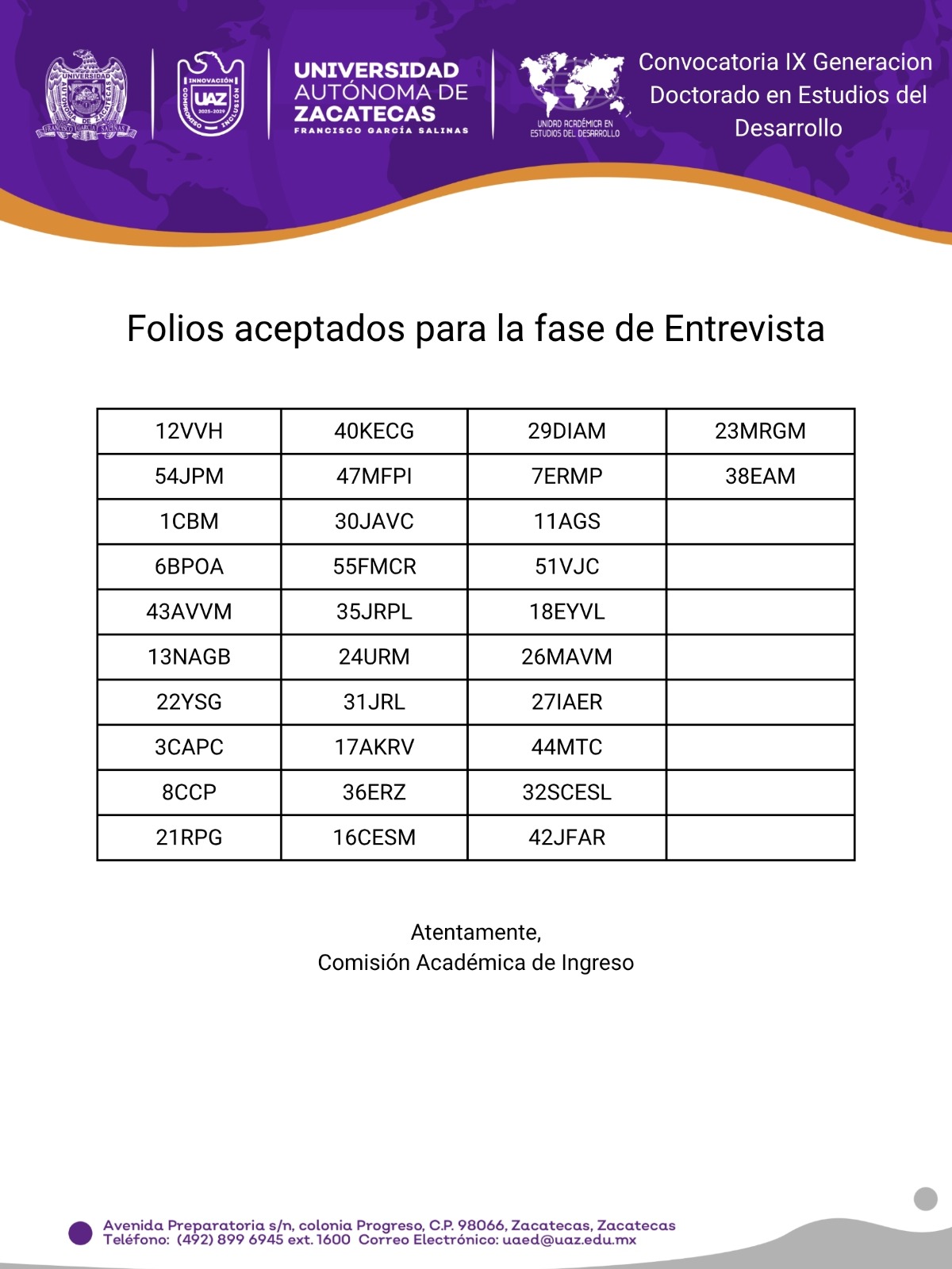 Folios aceptados para entrevista